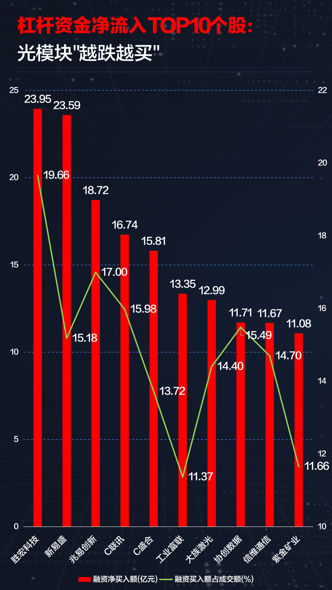 更反常的是,一向被视为市场情绪风向标的杠杆资金,这次竟与主力资金唱反调。尽管融资买入占比已跌破10%关口,杠杆整体参与意愿降温,但融资客仍在豪赌科技反弹,他们大举加仓的通信设备方向,恰恰是主力抛售的重灾区。