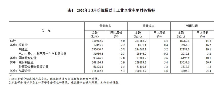 相较于2025年一季度,全国规模以上工业企业利润增长15.5%。其中,私营企业增速25.4%,股份制增长了20.9%,是主要利润增速来源。