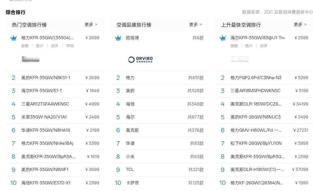 在中关村在线网站的空调品牌排名中,TCL所处位置同样相对偏下。如果把视线聚焦到6000元以上高端段,TCL和格力、美的、卡萨帝同样不在一个量级。
