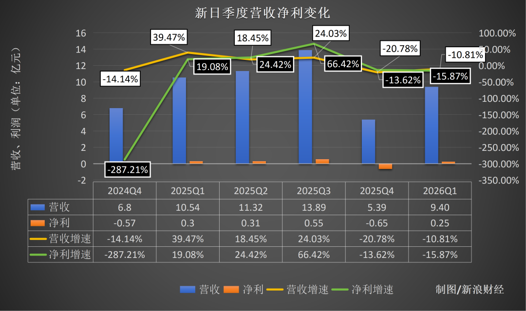近期,新日电动车还公布了2026年一季度财报,该季度其营收和净利双双出现两位数下滑,也是继2025年Q4之后再次交出不合格的成绩单。