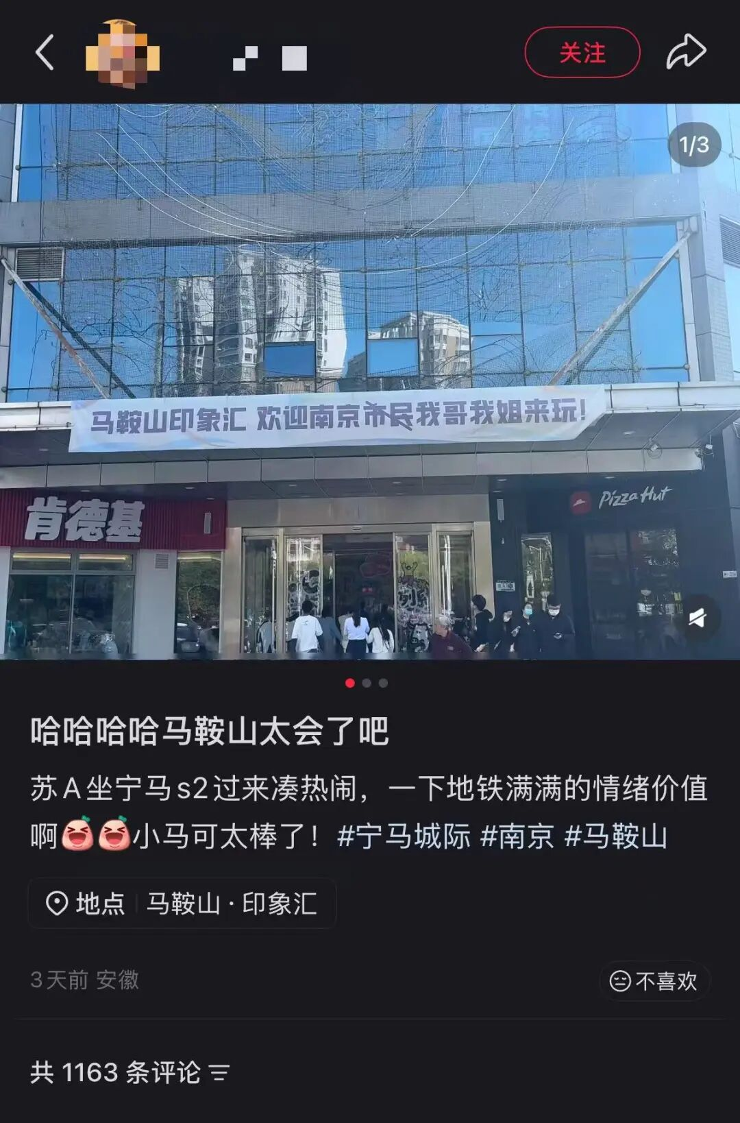 ✎马鞍山商圈的欢迎横幅图源:网络截图
