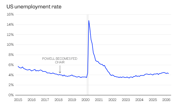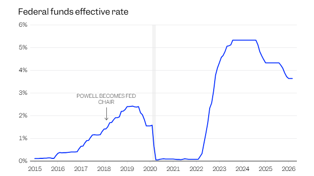 2026年5月15日,鲍威尔的主席任期将正式画上句点。这一天,他的继任者、特朗普提名的凯文·沃什预计将通过参议院银行委员会确认投票,接掌这一全球最具权势的货币政策职位。