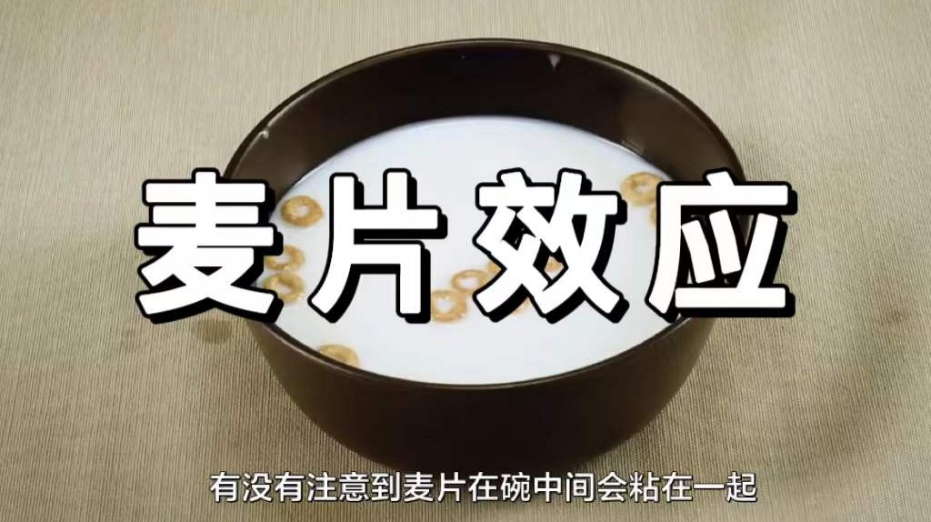 麦片,最方便速食的西式早餐,简单用牛奶一泡,就可以边刷手机边享受快乐的十分钟。但如果你专心吃着牛奶麦片,你会观察到这样的现象:碗里的麦片总会凑成一堆,或者粘在碗边。事实上,软饮里的气泡也会聚合在一起,或者贴在边沿。为什么它们之间好像有种独特的“引力”?让我们来聊聊这所谓的“麦片效应”。