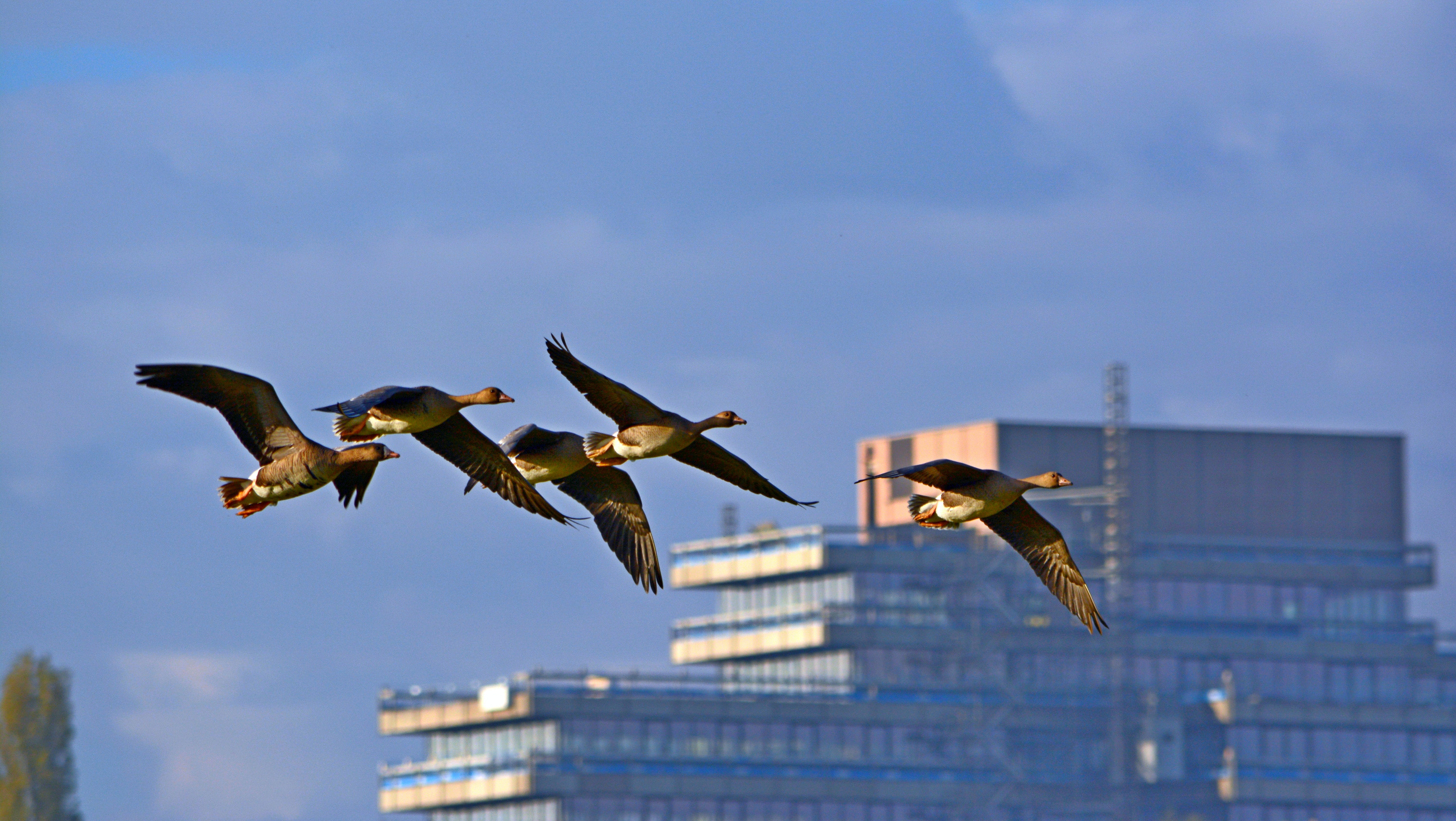 还有通讯塔、发电站和风力涡轮机等,撞上它们的鸟群都可能受到很大的伤害。城市中的高楼大厦和夜间灯光也曾让鸟类们迷失方向,发生严重的鸟撞现象。