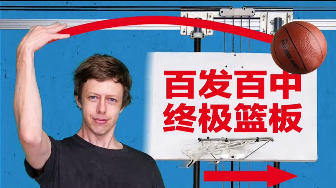 2020年4月,Shane Wighton在YouTube频道上传了第一版百发百中篮板的制作过程。他设计了一块曲面篮板,其弯曲弧度经过了精密的计算,让球技很差的人也能轻松进球。在第二版中,Shane Wighton用上了机器人和计算机视觉技术,篮板可以前后、上下、左右来回晃动。当球打在篮板上的时候,篮板会自己调整角度,把球弹到篮筐里。但是这版存在一个问题,万一打不中篮板呢?