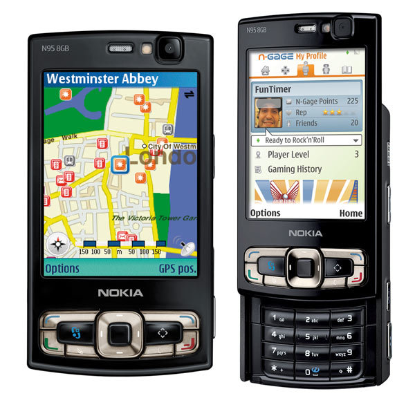 (图2)一代机皇——诺基亚 N95,采用双向滑盖设计,内置 GPS,支持 3G+Wi-Fi,配备 500 万像素卡尔蔡司镜头,运行 Symbian S60 系统。