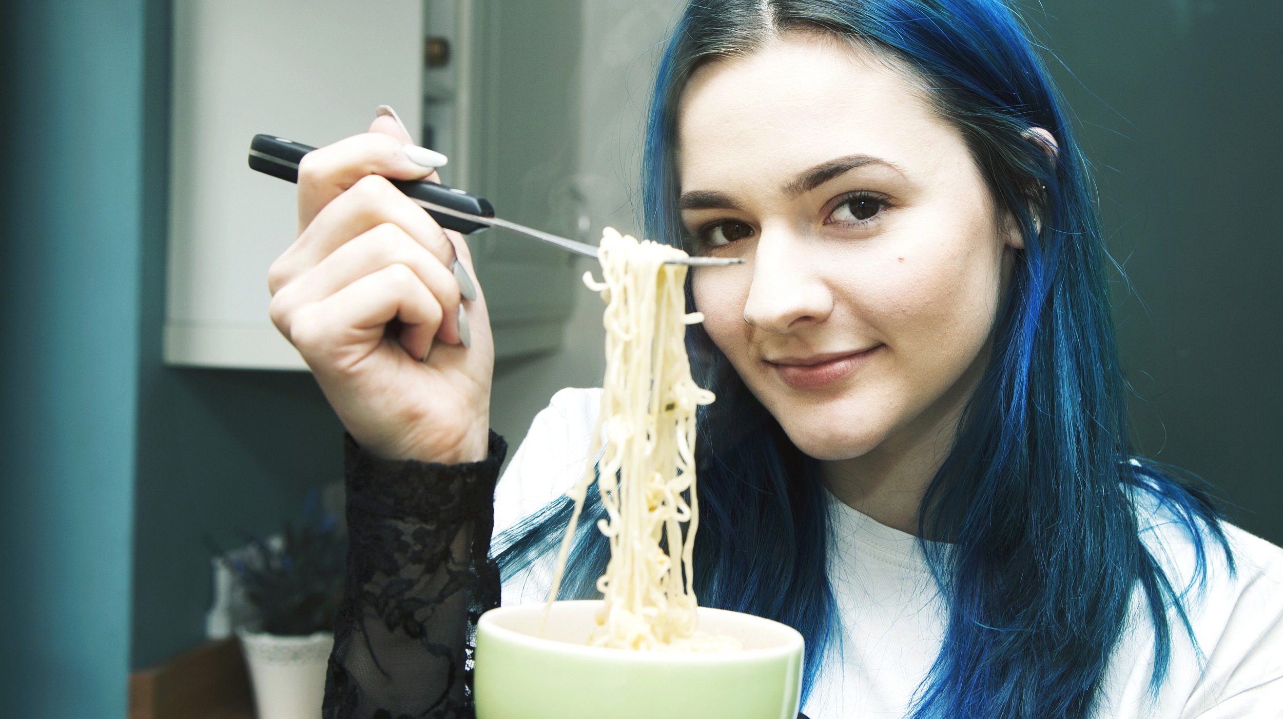 人们一致发现,人工智能似乎不太想让这个女孩老实吃面。