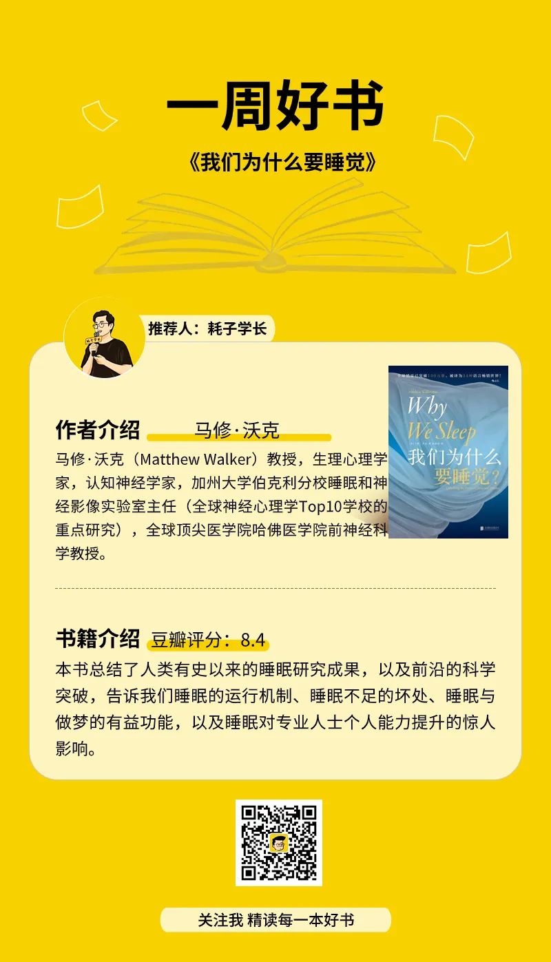 读完这本书,开始让我们从更加科学底层的视角去看待睡眠,我也开始在理解的基础上尝试一点一点优化我的睡眠习惯,重视闭眼之后的这八个小时。