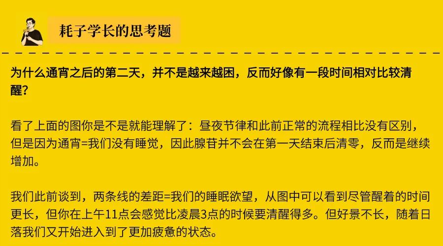 上图中曲线之间的距离直接反映出了你对睡眠的渴望。两者之间的距离越大,你的睡眠欲望就越强烈。