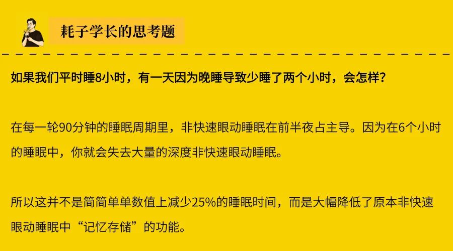 少睡两个小时并不仅仅是数值上的减少,而会降低60%-90%的记忆力或创造力;