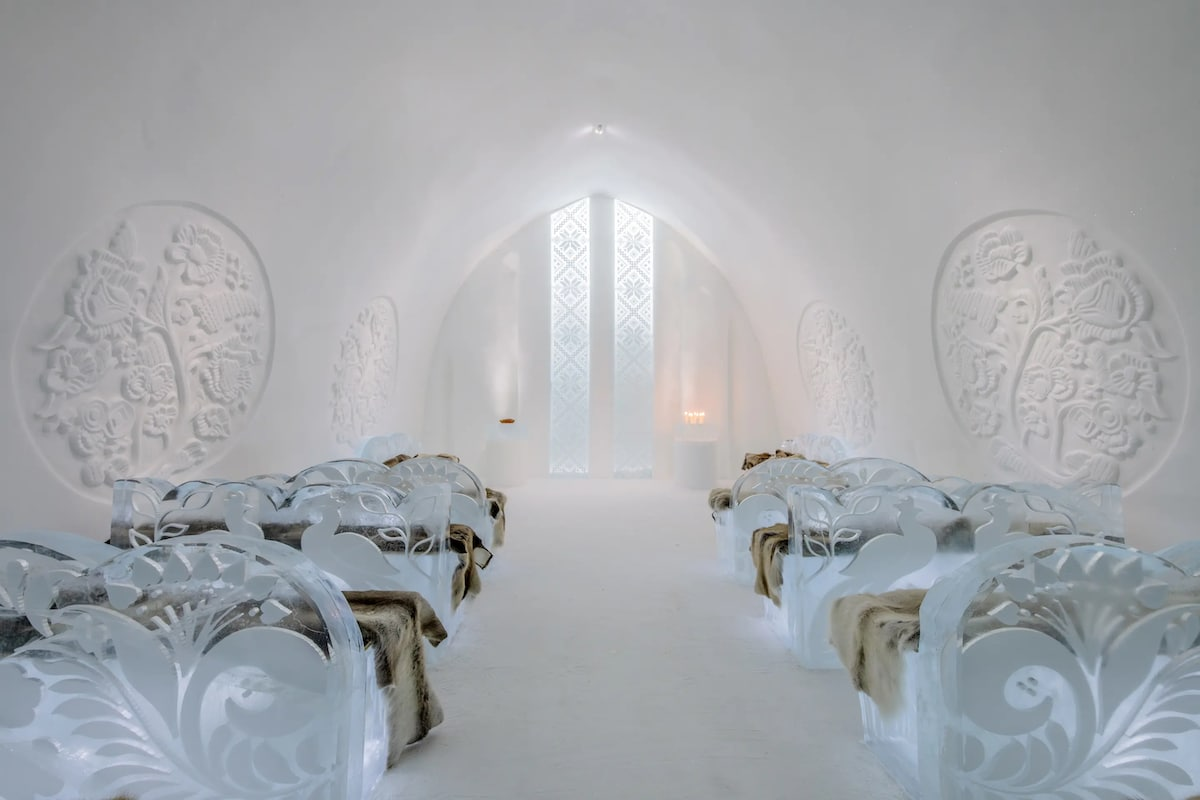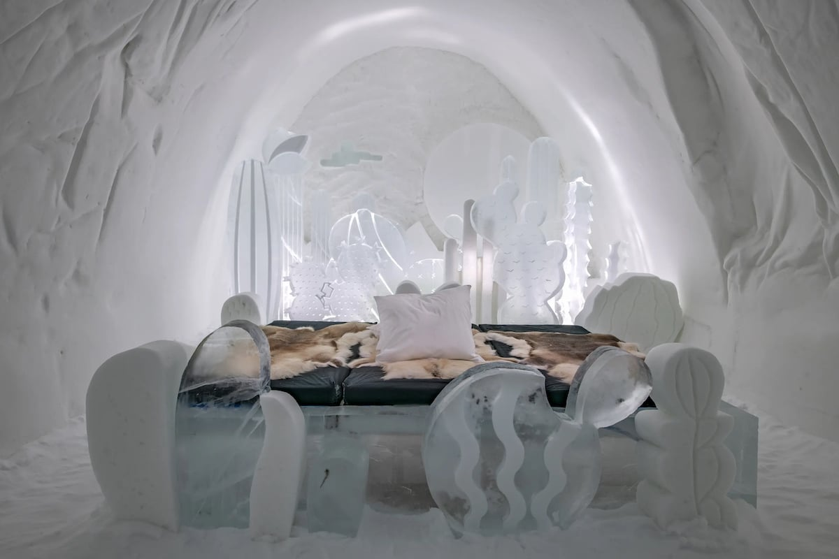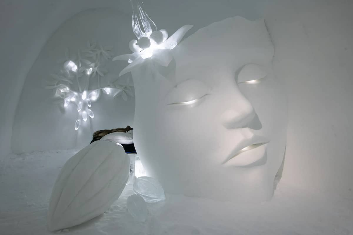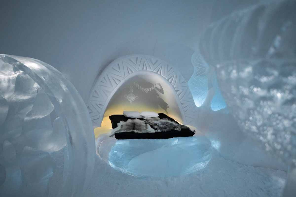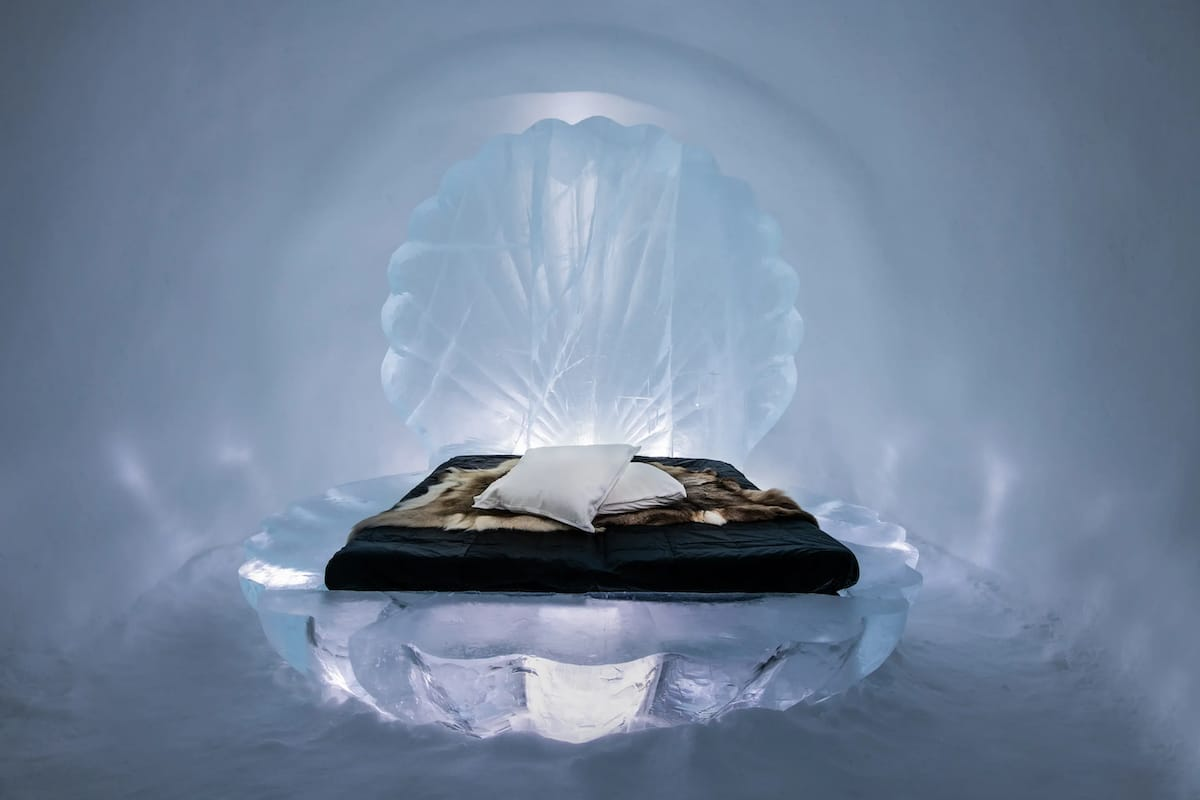 看冰雕还是有点太保守了,在瑞典你可以直接睡进冰雕里
