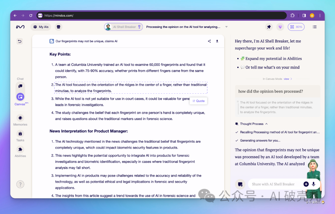 MindOS 非常适合个人用户,无需编程,通过可视化配置,即可创建自己的 AI Agent,实现定制新闻、信息沉淀、日历和邮件管理等。我特别喜欢用它的 Canvas(画布)功能来完成新闻简报浏览、文档阅读协同和网页内容讨论,非常直观、效率很高。
