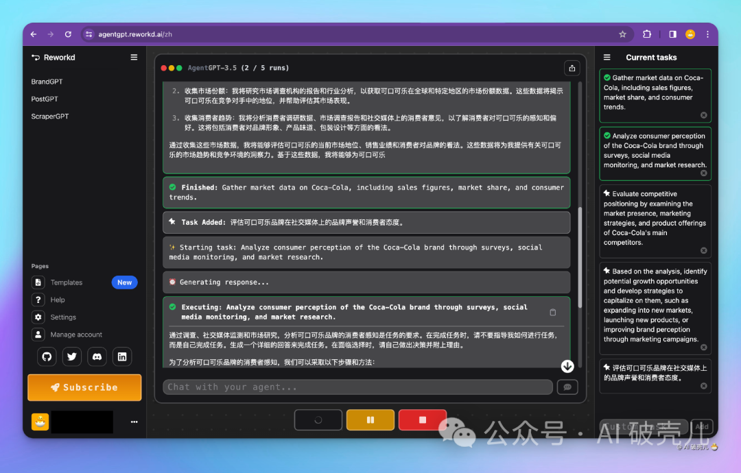 在 Reworkd AgentGPT 的产品路线图中,它计划拥有跨 Agent 交互的能力,这一点引起了我们的注意,但目前它只是一个功能有限的 Beta 版本产品。我最喜欢的是官方提供的 AI Agent 模版,帮我思考能用 AI Agent 干什么。还能复制模版,一键创建自己的 AI Agent。