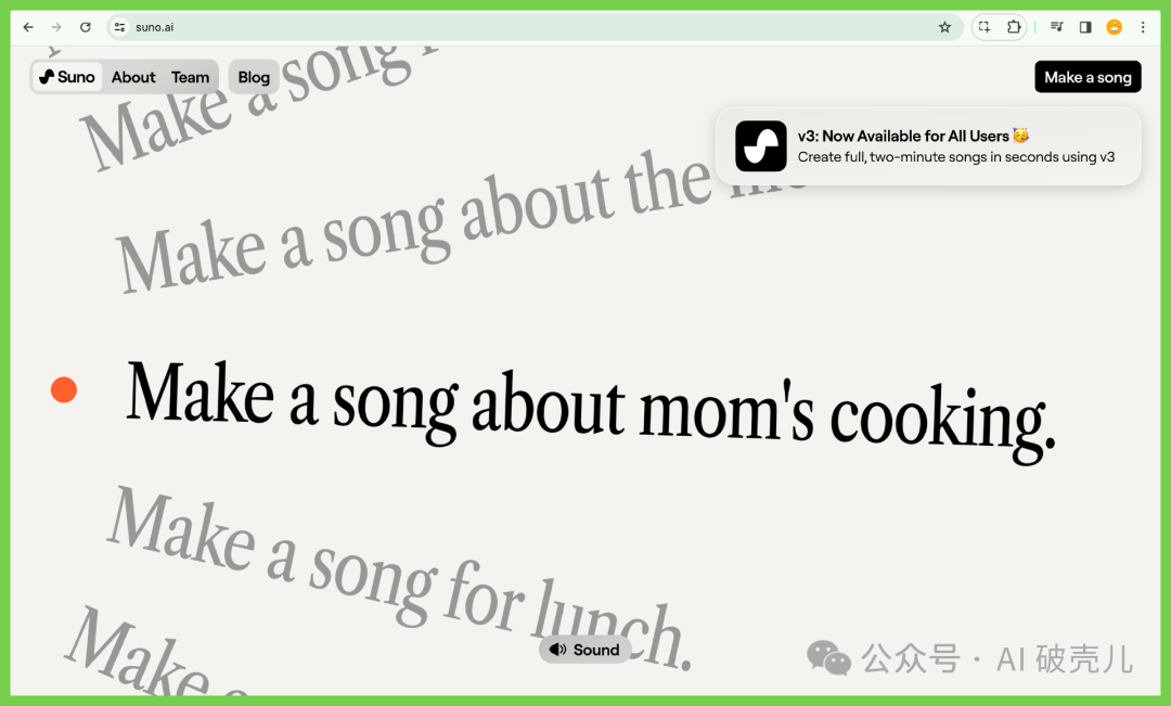 Suno 就像一个为你而存在的 AI 音乐电台,通过它,可以为任何人、任何事写歌。
