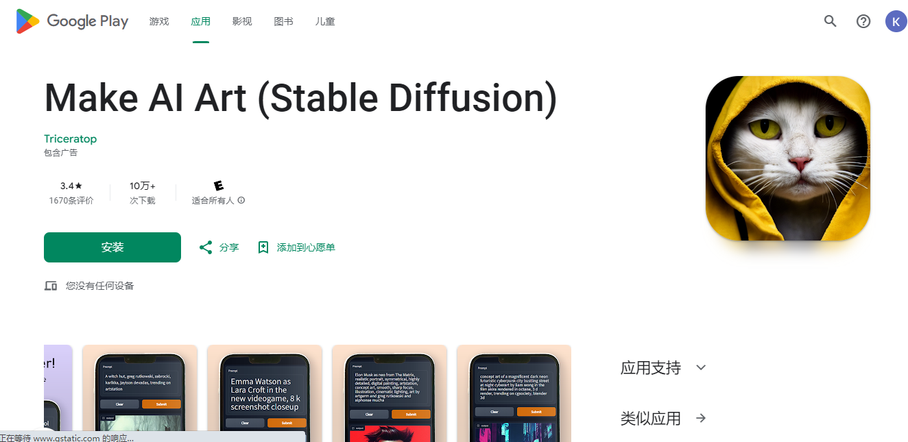 Make AI Art (Stable Diffusion) 是一款应用程序,为用户提供简单直观的界面来访问一些世界上最强大的图像生成人工智能 (AI) 模型,例如 Stable Diffusion 和 MidJourney。 要生成图像,用户只需提供他们想要生成的图像的文本描述。应用程序中引入的所有人工智能模型都可供用户免费探索和实验。