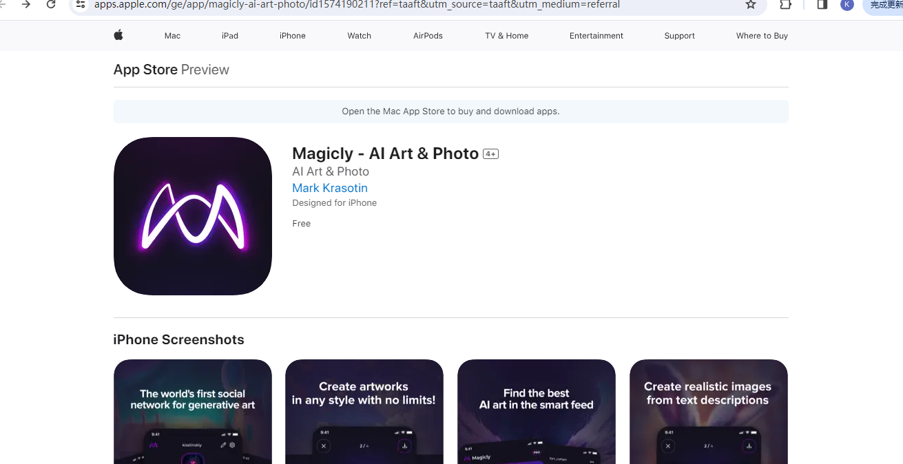 链接:https://apps.apple.com/ge/app/magicly-ai-art-photo/id1574190211?ref=taaft&utm_source=taaft&utm_medium=referral
