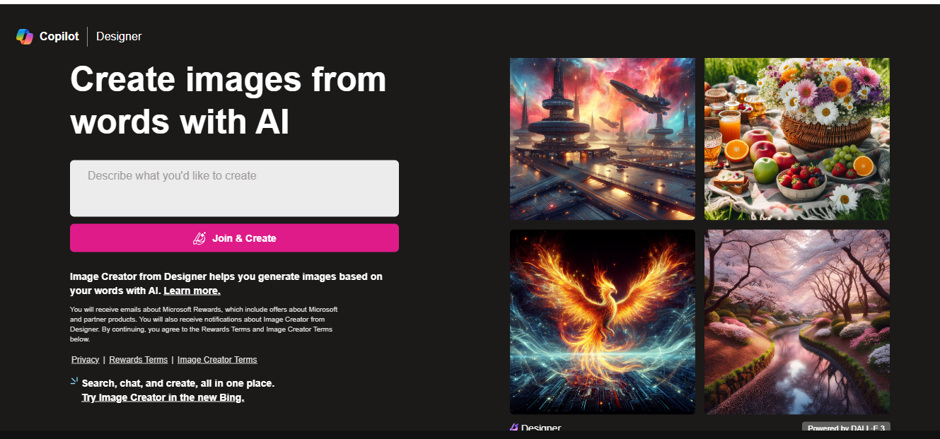 Microsoft Bing 的 Image Creator 工具是一项人工智能 (AI) 搜索功能,可根据用户输入文本生成图像。该工具使用人工智能技术来分析用户提供的文本,并自动创建与给定描述最匹配的图像。 它是一个免费工具,可以通过 Bing 的图像搜索功能访问。然而,要使用该工具,用户需要同意 Bing 的隐私政策,其中涉及 cookie 的使用、广告个性化、分析和社交媒体。