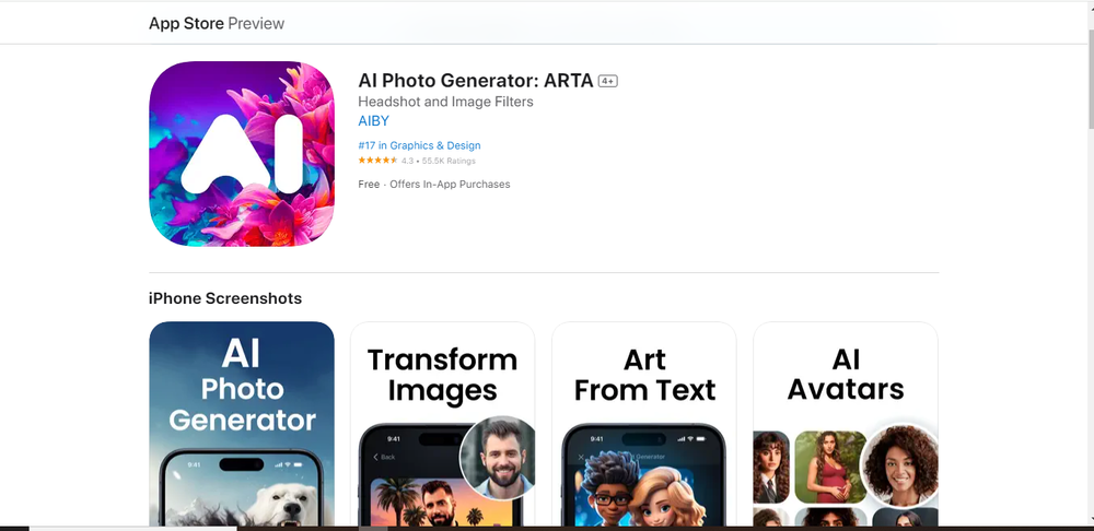 网站:https://apps.apple.com/us/app/ai-photo-generator-arta