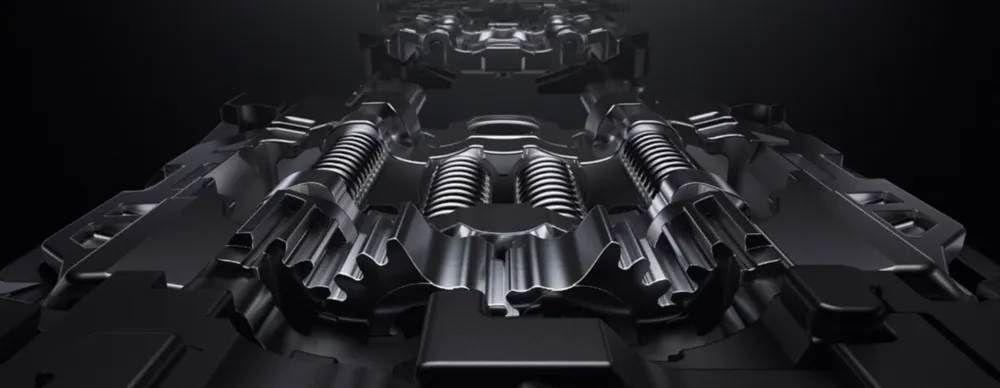 抛开花里胡哨的名称,这项技术的大致原理是:当屏幕展开时,独有的双力臂杠杆齿轮能够支撑两门板无缝闭合,屏幕平整且不会晃动;折叠时,双力臂杠杆齿轮可以带来更大容屏空间,减小对屏幕的挤压,降低对屏幕平整度的影响。