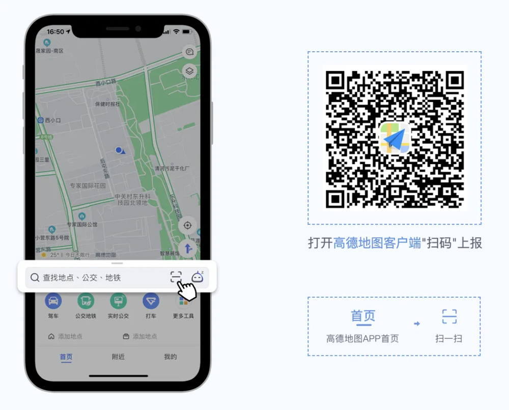 高德地图的上报方式和腾讯地图基本一致,但高德地图的上报入口,需要扫码进入。
