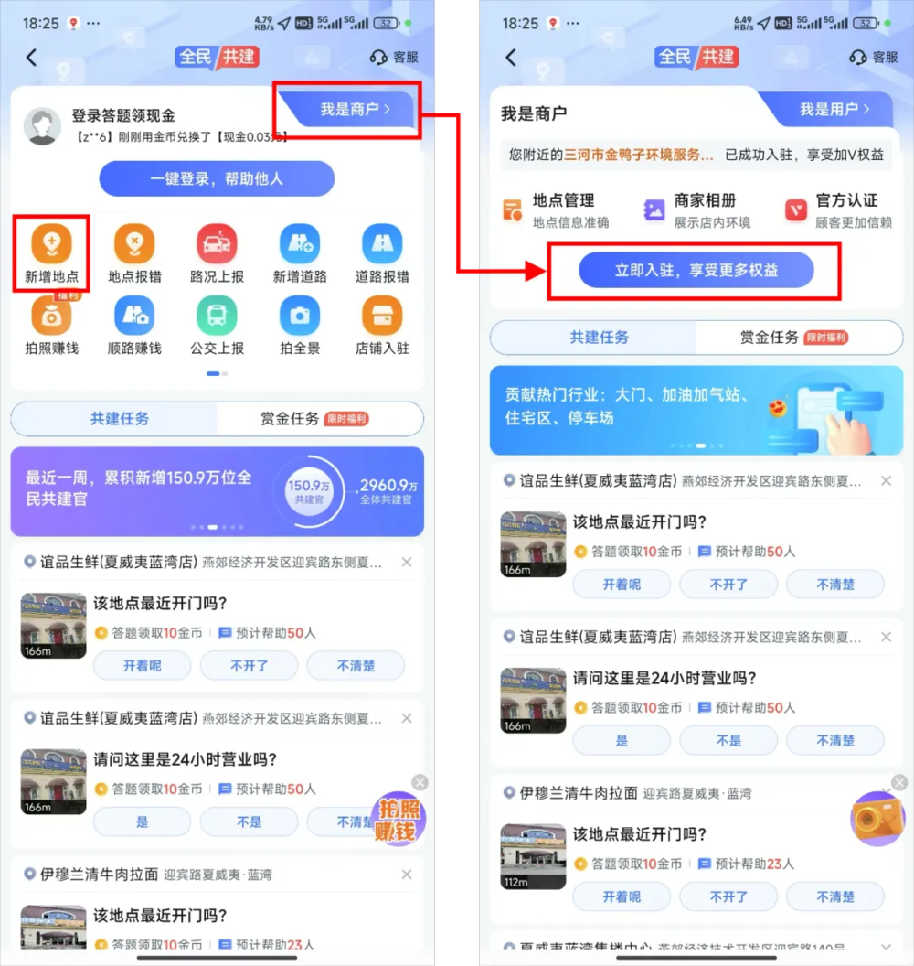 “商户入驻”和“地点新增”之后的效果如下图所示: