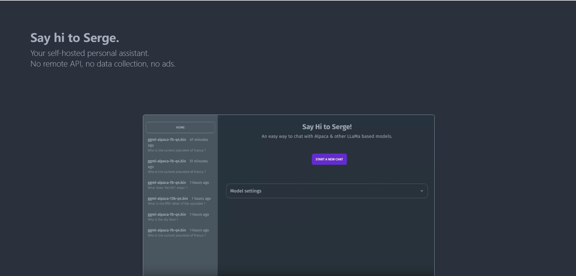 Serge 是一款自托管个人助理工具,可为用户提供安全且私密的环境。 Serge 没有远程 API、数据收集或广告,可确保高水平的隐私和数据安全。