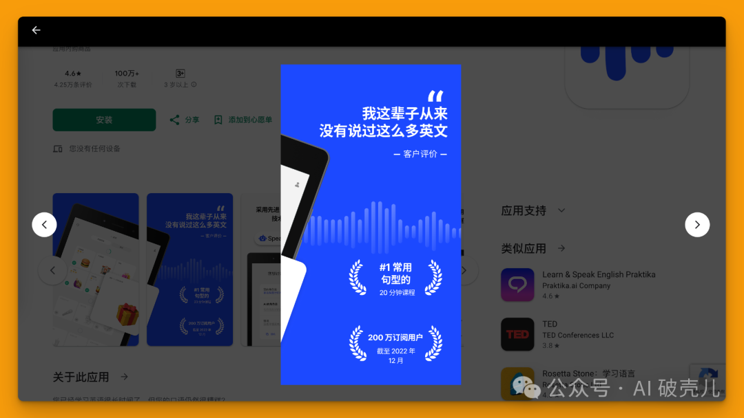 Speak 也曾提过,用户使用第一周的平均说话量就能达到 1000 多句。下面这个宣传海报也看得人又鸡血又莫名心酸: