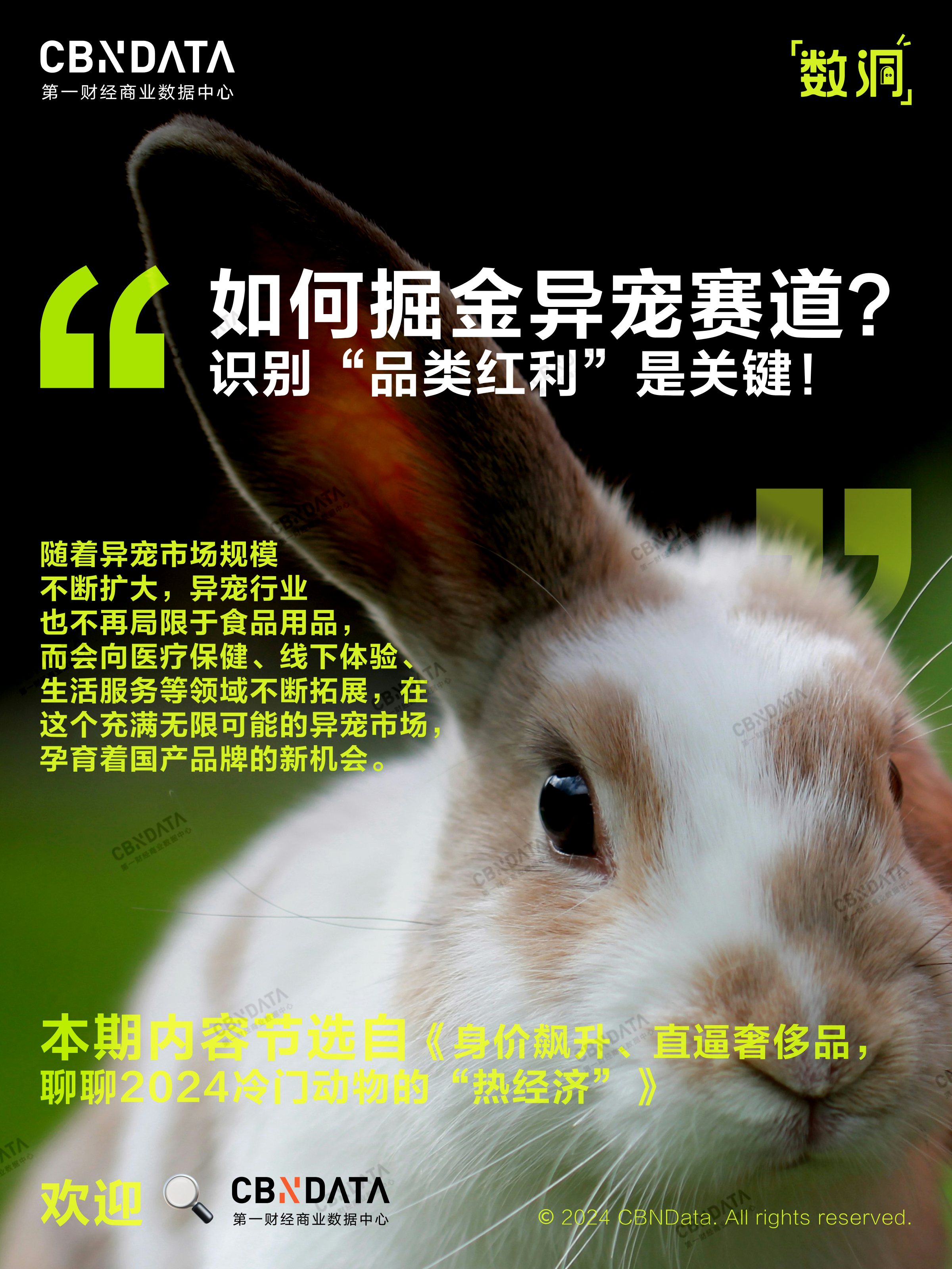 以上内容节选自CBNData《身价飙升、直逼奢侈品,聊聊2024冷门动物的“热经济”》,完整版已官网发布,更多消费数据洞察,关注CBNData数洞。
