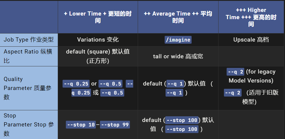 要覆盖特定提示的默认生成速度,可以在末尾添加 --fast 、 --relax 或 --turbo 参数。
