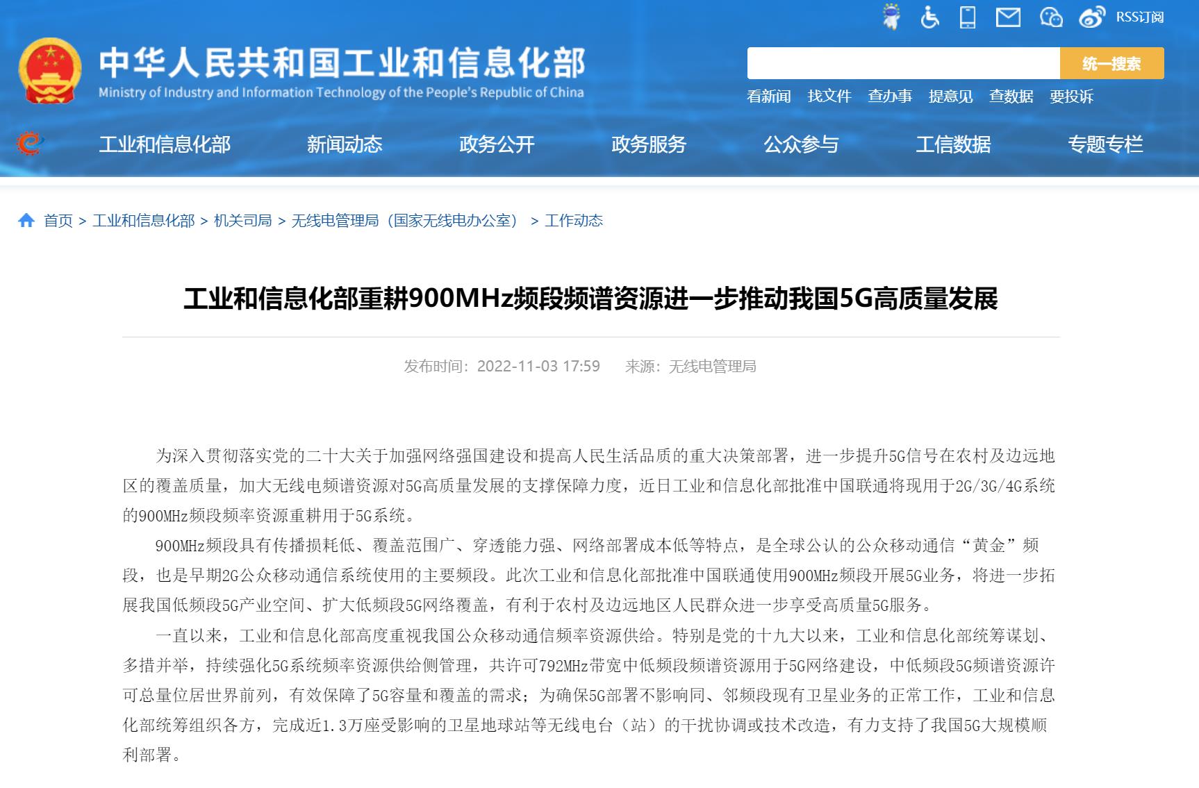 【工信部批准中国联通将900MHz频段频谱资源重耕用于5G系统】工信部批准中国联通将现用于2G/3G/4G系统的904-915/949-960MHz频段(900MHz频段)频率资源重耕用于5G系统。900MHz频段具有传播损耗低、覆盖范围广、穿透能力强、网络部署成本低等特点,是全球公认的公众移动通信“黄金”频段,也是早期2G公众移动通信系统使用的主要频段。此次工信部批准中国联通使用900MHz频段开展5G业务,将进一步拓展我国低频段5G产业空间、扩大低频段5G网络覆盖,有利于农村及边远地区人民群众进一步享受高质量5G服务。