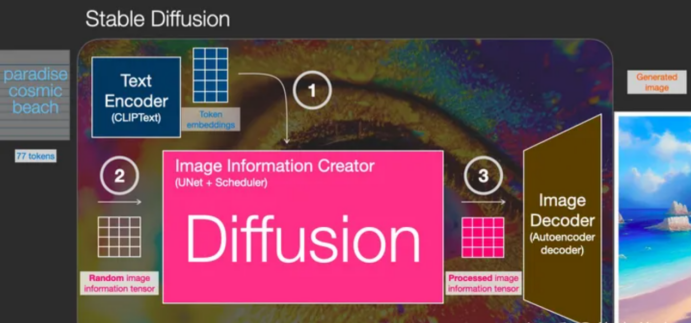 那么文字是怎么转换成Diffusion的输入的呢?加入文字后 Diffusion 又有哪些改变?下图可以找到答案。