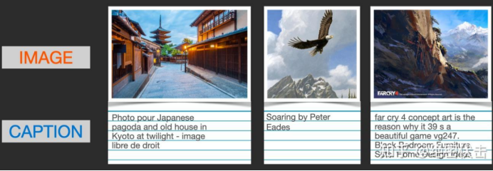 CLIP 在图像及其描述的数据集上进行训练。想象一个看起来像这样的数据集,包含4 亿张图片及其说明: