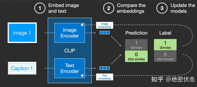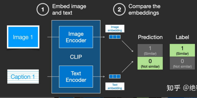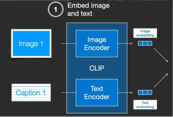 实际上CLIP是根据从网络上抓取的图像及其文字说明进行训练的。CLIP 是图像编码器和文本编码器的组合,它的训练过程可以简化为给图片加上文字说明。首先分别使用图像和文本编码器对它们进行编码。