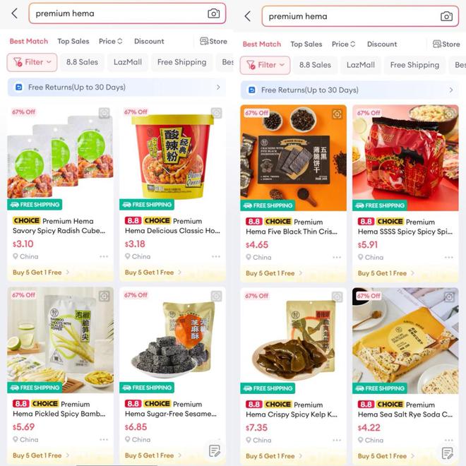 据悉,东南亚的消费者在餐饮方面口味偏重,“辛辣”、“高热量”、“速食”是高频关键词。盒马与Lazada买手及供应链团队就适合新加坡市场的单品做了充分调研,口味偏辛辣的休闲零食和小菜:脆爽海带结、泡椒脆笋尖、香辣萝卜干等被遴选上架;在国内销售火爆的辣辣辣辣辣面、火鸡面也在此次出海之列,为社交平台的网红商品。首批大约10个SKU从8月1日起在Lazada上架开售,后期还会继续扩大商品种类。