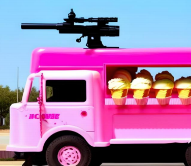 机关枪安装在一辆粉色冰淇淋车上,技术
