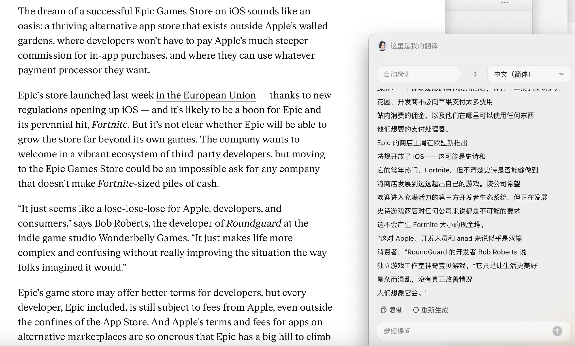 但当我使用翻译和问问豆包时,不仅无法智能断句,还频繁出错。