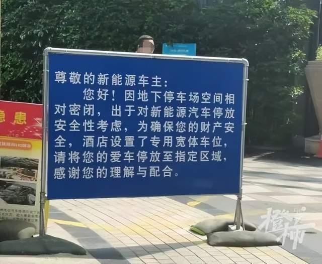 据澎湃新闻,近日有网友发帖吐槽去杭州萧山一家五星级酒店住店吃饭,发现自己的新能源车进不了酒店的地下停车库,酒店方不准新能源车进入地下车库,而燃油车可以进地下停车库,网友吐槽:“酒店地面只有正门前的8个车位,哪怕全部停新能源车也是不够的,而且高温天气,谁也不愿把车停在太阳底下。”