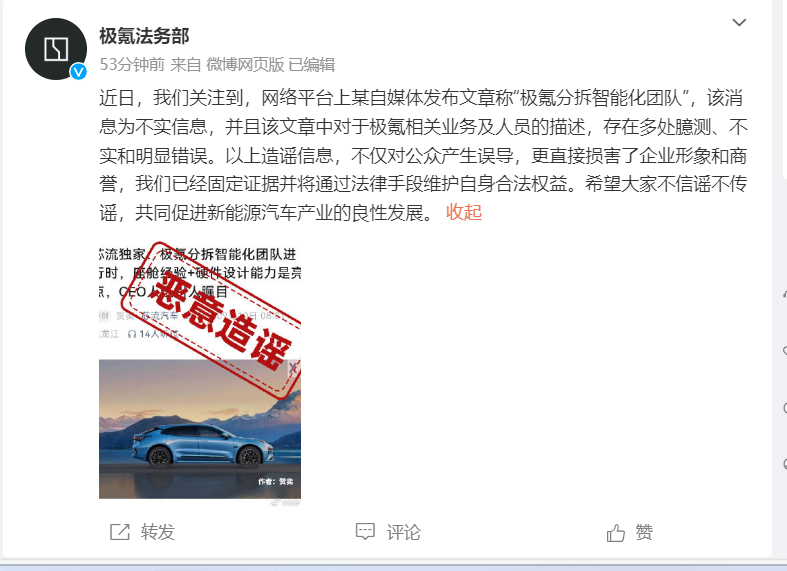 据财联社,针对分拆智能化团队的消息,极氪方面回应称,该消息不实。今日有业内人士透露,极氪正在拆分其智能化团队(主要包括智驾方案、智能座舱和其他涉及智能化业务的部门),使其独立融资运营,以获得更高的自由度。该次分拆大概涉及2000-3000名员工,由CEO安聪慧的助理崔立主持进行。