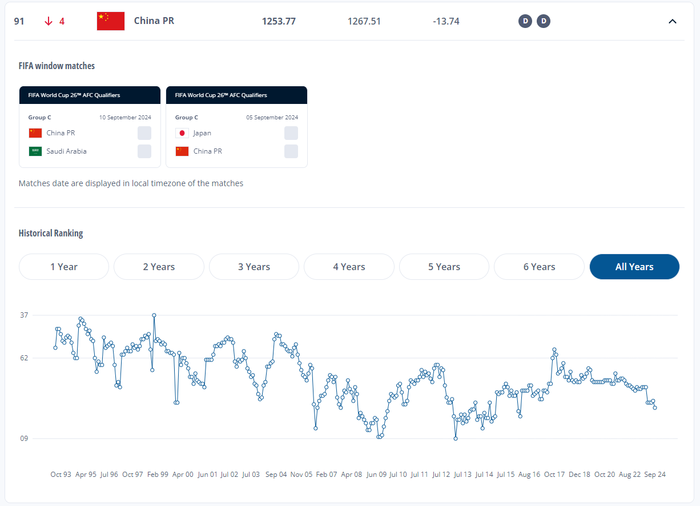 据界面新闻,国际足联9月19日更新的男子足球排名显示,在世预赛亚洲区18强赛中表现不佳的中国男足排名较上一期(7月18日)下降4名,位列第91。