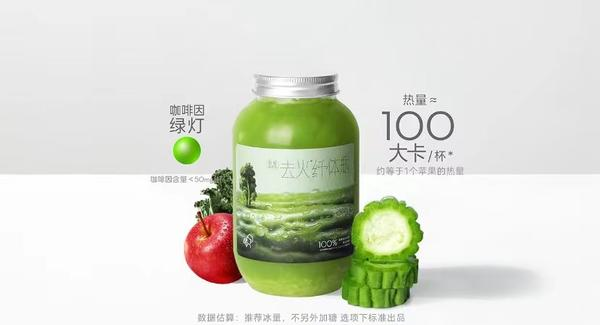 9月19日,喜茶正式上新全新品类“超级植物茶”系列第二款单品“去火*纤体瓶”。据官方介绍,该款新品以真茶为基础,选用新鲜苦瓜与羽衣甘蓝,并加入红富士苹果、黄柠檬等新鲜果蔬一齐入茶,茶香与果香交织,口感鲜爽轻盈。一杯热量大约为100大卡,相当于一个苹果的热量。