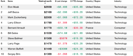 今年年初,马斯克的财富为2290亿美元。截至周一收盘,其财富在不到九个月的时间内激增了360亿美元,达到2650亿美元,高居全球榜首。