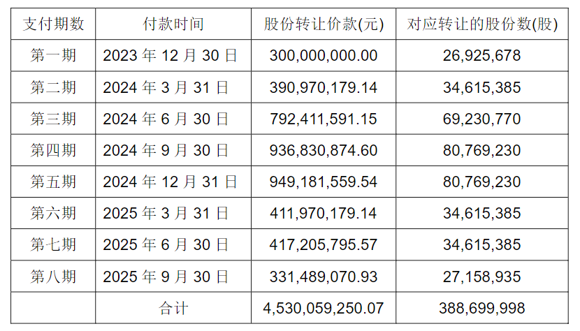 公告指出,2023年末,公司向大连御锦出售所持有的3.89亿股大连万达商业管理集团股份有限公司(以下简称“万达商管”)股份(对应万达商管于2023年8月25日增资扩股前公司的持股),标的股份所对应的转让价格为45.30亿元人民币。该项交易达成之时,王健林掌管的大连万达集团股份有限公司尚持有万达商管121.28亿股股份,占总股本比例为44.65%。根据双方签订的《转让协议》,前述交易资金由大连御锦分八期支付。截至今年7月,大连御锦已支付前三期,金额分别为首期3.00亿元、二期3.91亿元、三期2.00亿元,总计8.91亿元。