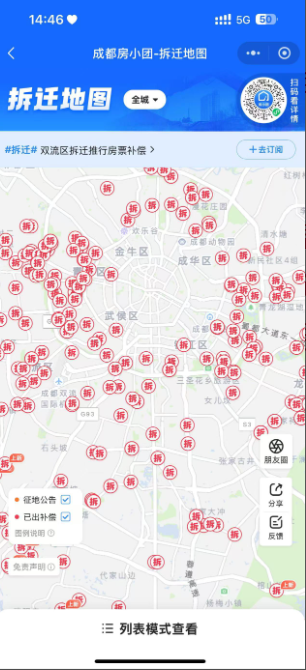 据财联社,网络流传一张成都拆迁图显示成都多地进行拆迁,并有部分网民表示获赔偿款超千万,一夜暴富。财联社记者查询该图片来源小程序(成都房小团)并对照相关政府官网文件发现,相关拆迁项目存在,但并非网传的近日突然集中爆发,而是一年内或更长时期内陆续产生的。