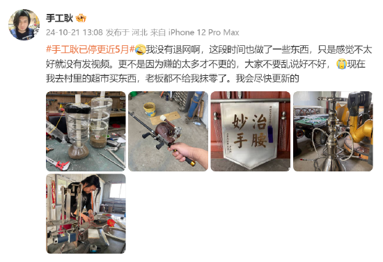 对此,10月21日,手工耿本人回应九派财经记者称:“不会永久停更,只是暂时没有更新。目前不接受采访,谢谢关心。”