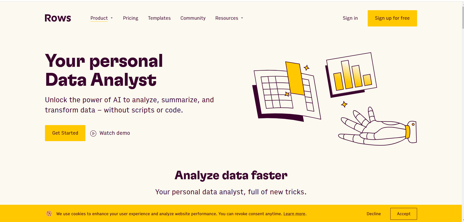 Rows AI 是一款一体化电子表格工具,旨在为用户提供强大的 AI 工具,以更高效地分析、汇总和转换数据。