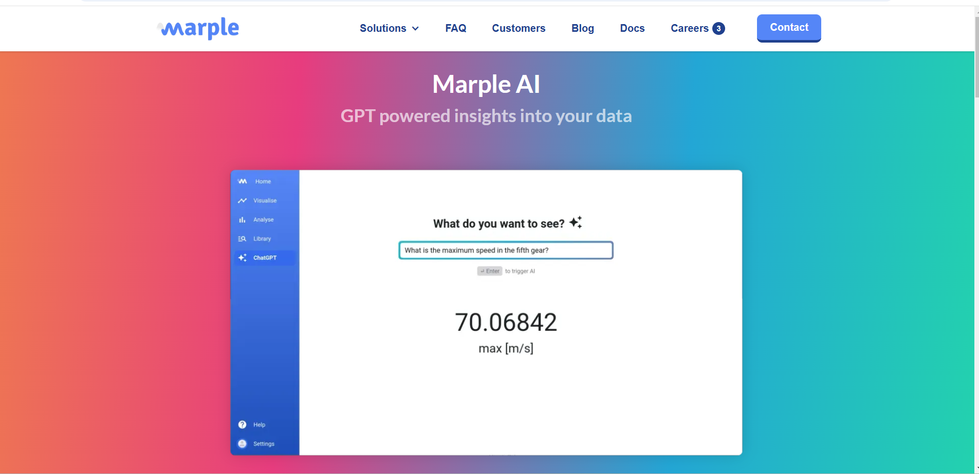 Marple AI 是一款人工智能驱动的工具,旨在提供对时间序列数据的洞察。借助 Marple AI,用户可以询问有关其数据的问题并自动生成相关图表或执行复杂的计算。