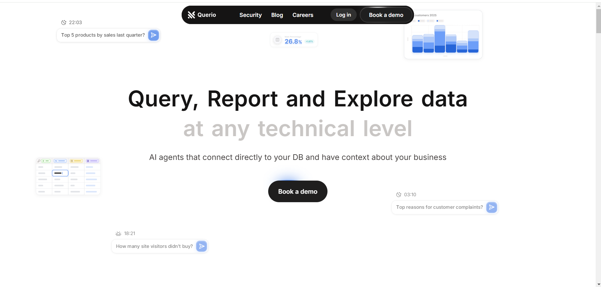 Querio 是一种允许用户使用自然语言与其数据进行交互的工具。它消除了对专门数据团队的需求,并使用户能够通过轻松连接和分析任何类型的数据来成为数据驱动的。