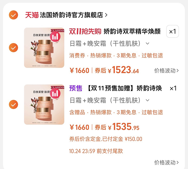 澎湃新闻记者在社交平台上注意到,已经有不少用户发预售前后实付价的对比图,确实出现了直接购买价更低的情况。这被指十分“伤感情”,“凑满减、下定金,再定好闹钟提醒自己付尾款,结果一通操作下来还贵了几十块钱,又得再退款重新买,预售的意义何在?”
