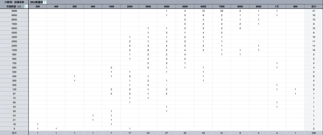 (我们模拟的SKU数量和销量关系矩阵图)