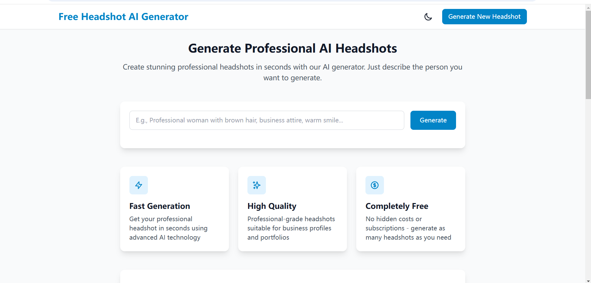 Free Headshot AI Generator 是一款专为使用人工智能生成数字头像而设计的工具。该系统旨在仅根据用户提供的描述输入生成独特的、人工智能驱动的肖像。